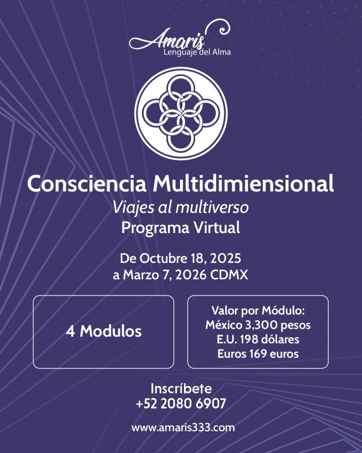 Módulo IV. Familia cósmica. Los tres Módulos anteriores son una preparación para desarrollar habilidades de percepción y comunicación telepática para salir a explorar el multiverso con la familia cósmica que aguarda por esa conexión tanto en el planeta Tierra como en sus lugares de origen. Imagina que te enteras que tienes familia que vive muy lejos, distribuida en lugares maravillosos, que te están invitando a visitarles. ¡Vamos!